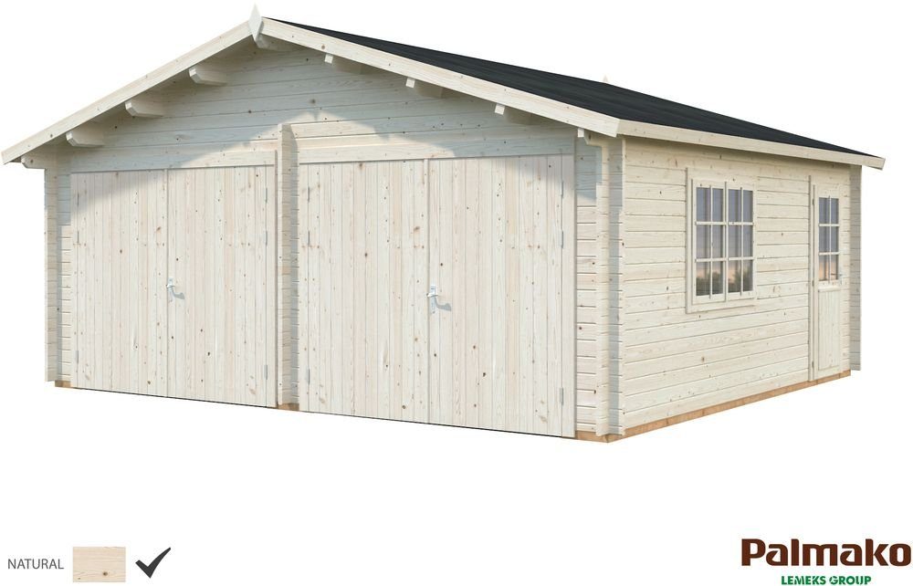 Denna byggsats kommer med slagport. Detta garage finns även med takskjutport eller utan portar.