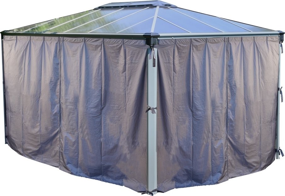 Använd dessa gardiner för att få en lite mer skyddad stämning i din paviljong undan från insyn ett enklare skydd mot lätta vindar samt ett skydd mot solen. Dessa är inte tänkt att användas som skydd mot blåst.Passar till Martinique.