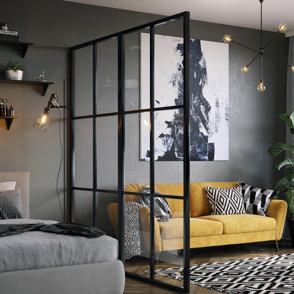 Det finns ofta olika behov av att dela av ett större rum till mindre och då finns denna fiffiga lösning till hands. En snygg glasvägg som släpper igenom ljuset samtidigt som den visuellt delar av för att skapa rum i rummet, där exempelvis ett vardagsrum även blir ett sovrum.