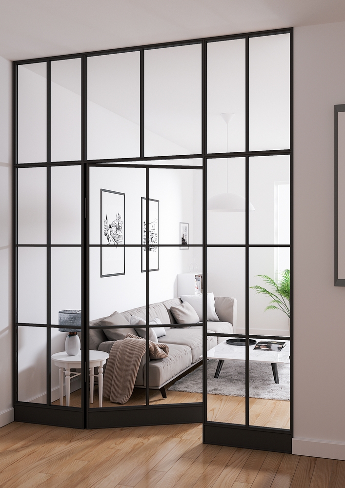Utan några större ingrepp kan du förvandla din etta till en tvåa med denna glasvägg med dörr eller avgränsa mellan rummen för att få mer avskildhet.