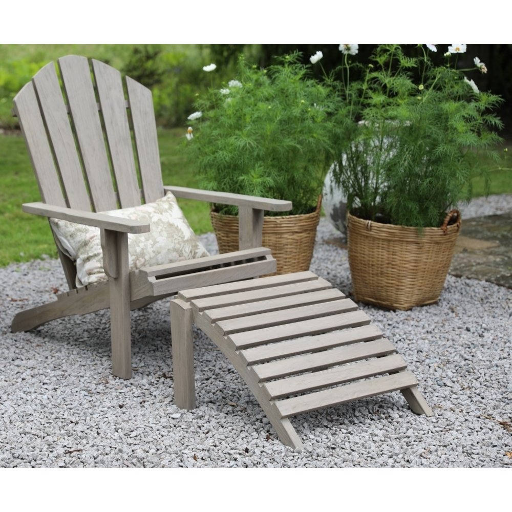 Grå teak däckstol med fotpall - Solstol trä för trädgård