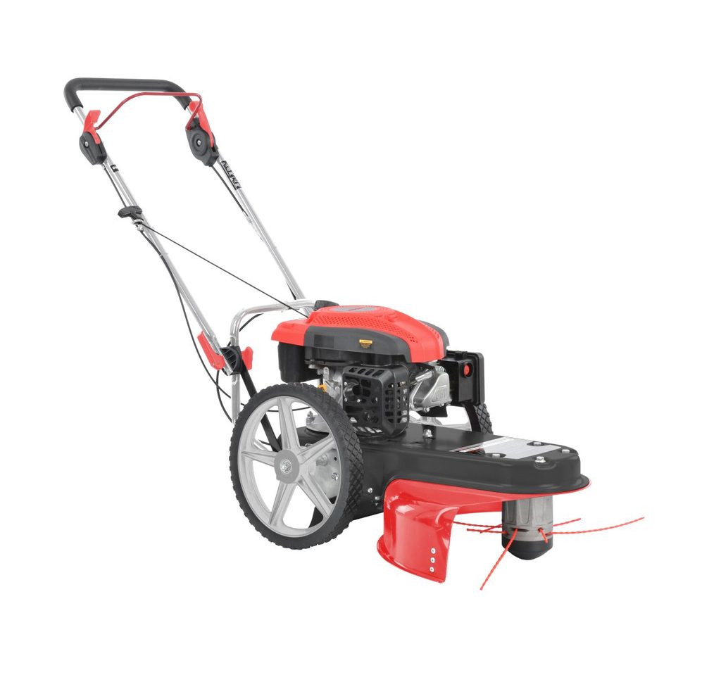 Grästrimmer på hjul, består av en standard trimmerdesign med långa robusta trimmertrådar. Maskinen tar sig an trimmerjobb men med större skala då arbetsbredden är betydligt större och kommer göra arbetet mer effektivt.