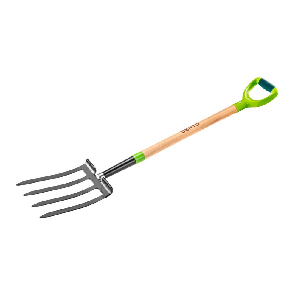 Grep med 4 breda klor. Skaft i hårt träslag med ergonomiskt plasthandtag.