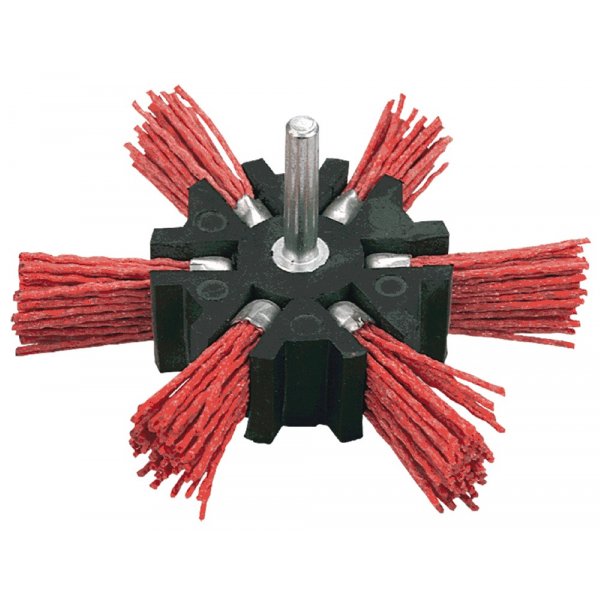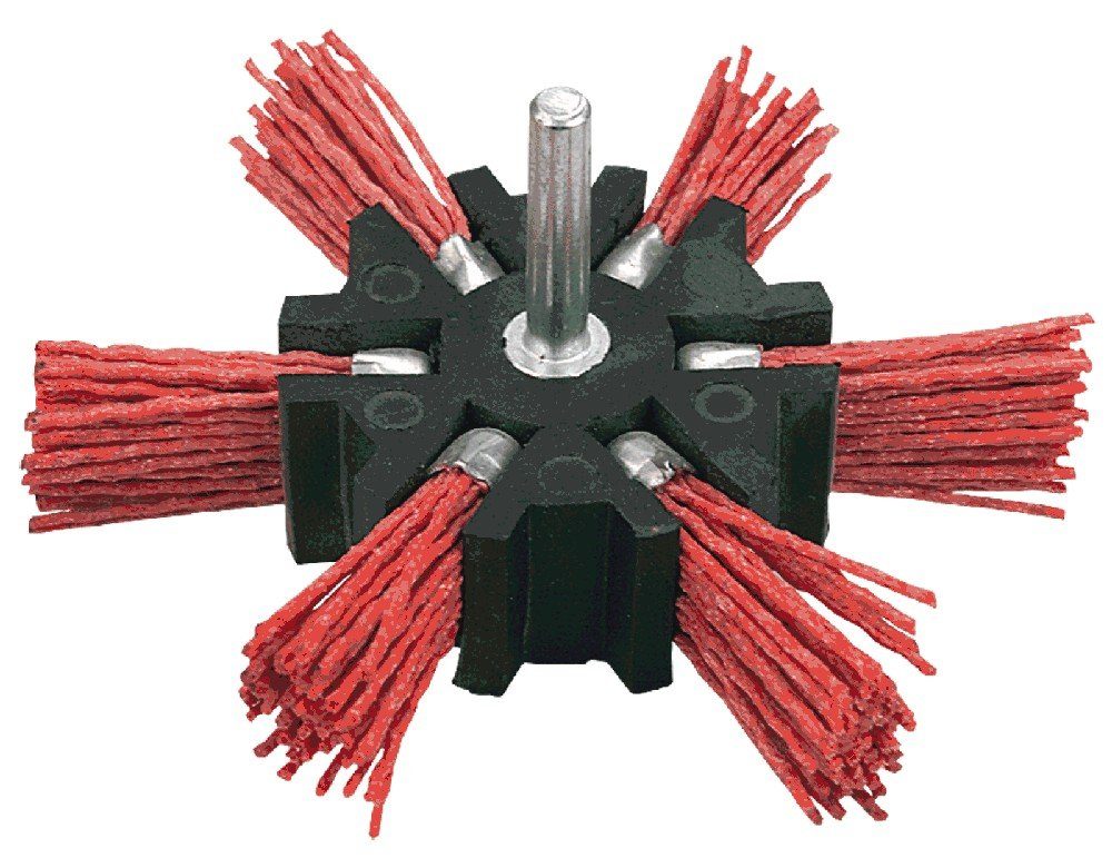 Slipmaterial inuti borstens nylontrådar möjliggör effektiv, men ändå skonsam borttagning av smuts, färgbeläggningar och rost.
