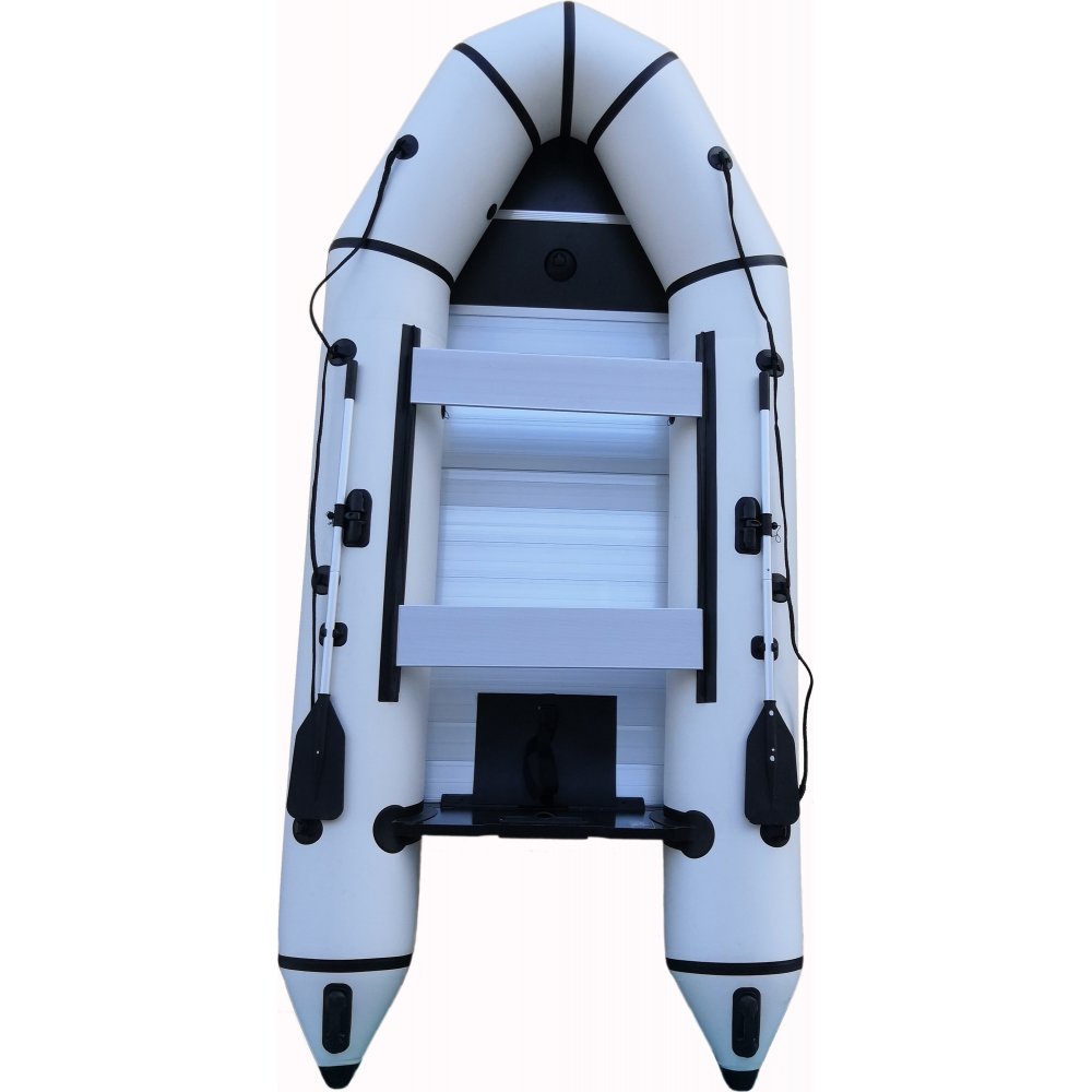 Gummibåt S380 är vår största gummibåt. Gummibåten kommer i snyggt vitt utförande med svarta detaljer och kan ta upp till 8 personer, eller 690 kg totalt. Aluminiumgolvet ger en robust känsla och tillför stabilitet. Gummibåten är mycket praktisk och kan till skillnad från vanliga båtar monteras isär och förvaras eller tas med i den medföljande transportväskan. Ta med båten på semester, paddla ut och fiska och njut av vågorna och sommaren. Ett par åror i hållbar aluminium är inkluderade, samt ett litet reparationskit.