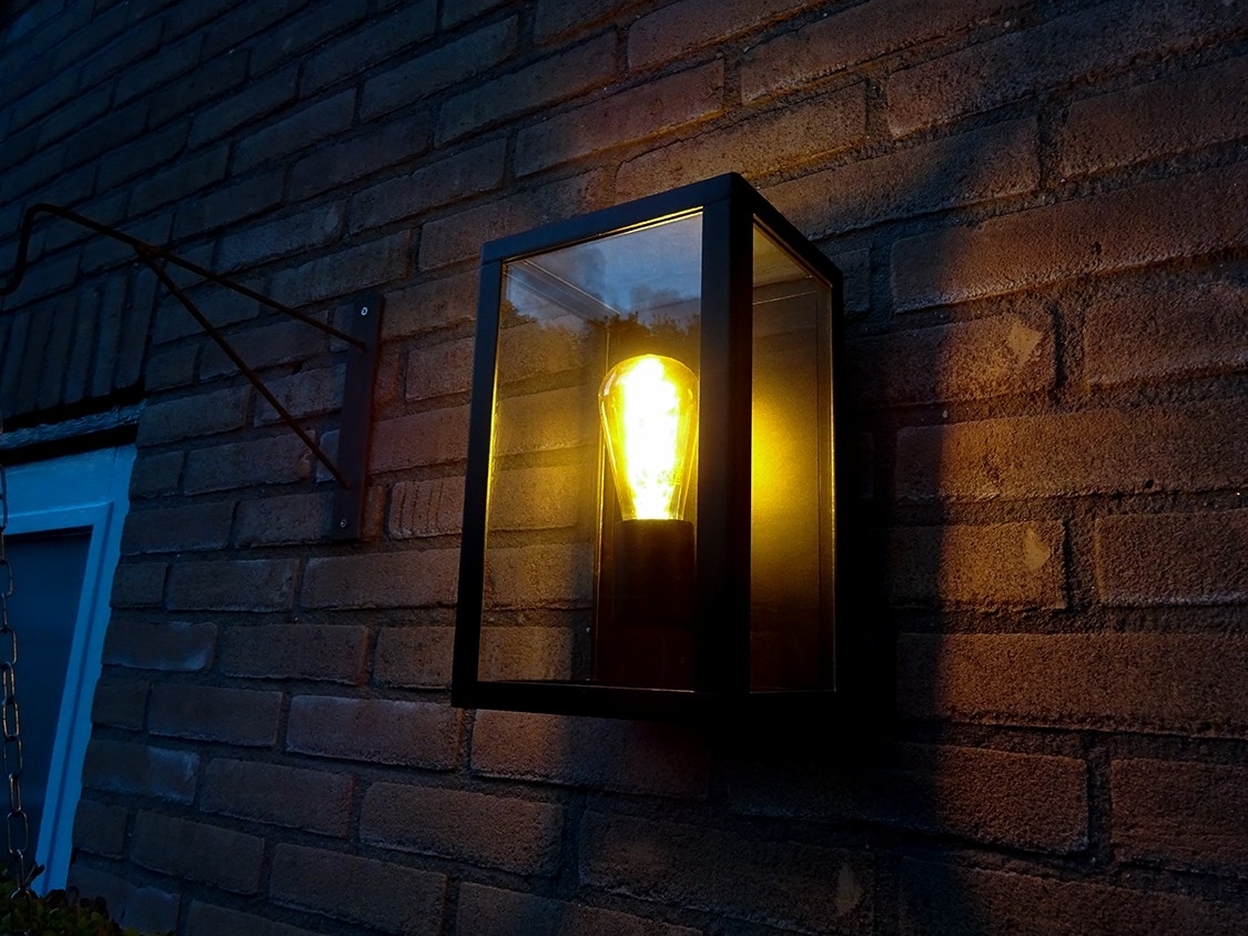 Utomhusarmaturen "Haag" med sitt glasskydd och svart aluminiumram är ett perfekt blickfång på dina väggar. Kombinera denna väggarmatur med våra vridna LED-glödlampor (art. 60047X) för en perfekt retro look eller med vår flamlampa (art: 600480). Detta stänkvatten- och dammskyddade armatur (IP44) kan användas i alla väderförhållanden.