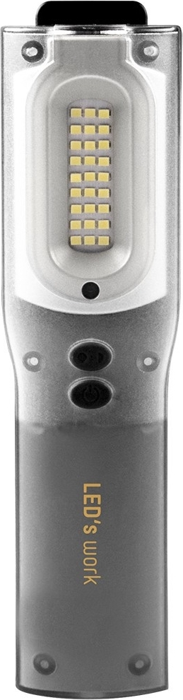 Uppladdningsbart och dimbar arbetsljus med en ljusstyrka på 1000Lm. Den har 2 lampor, ett primärljus på 1000Lm framtill som kan ställas in på 100% och till 50% och ett extra ljus på 200Lm i toppen som också kan ställas in på 100% och 50%. När det är fulladdat fungerar detta primärljus i 3 timmar och hjälpljuset i 12. Den vikbara magnetfoten har en halkfri yta, så att du kan placera ljuset på en slät yta utan att det glider eller faller och justerar det på jämna ytor . På toppen har ljuset en robust polykarbonatkrok att hänga den från. Denna arbetsljus levereras komplett med en 230V laddare och en 12V billaddare.