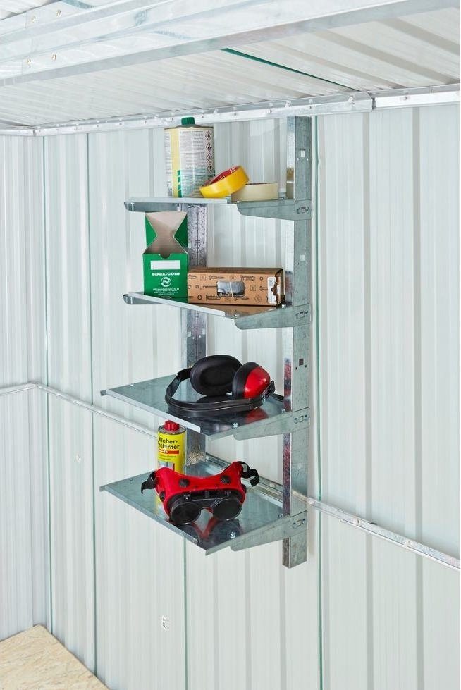 Hylla med fyra plan som gör sortering och förvaring enkelt. Fungerar bra till skjul, garage eller växthus.