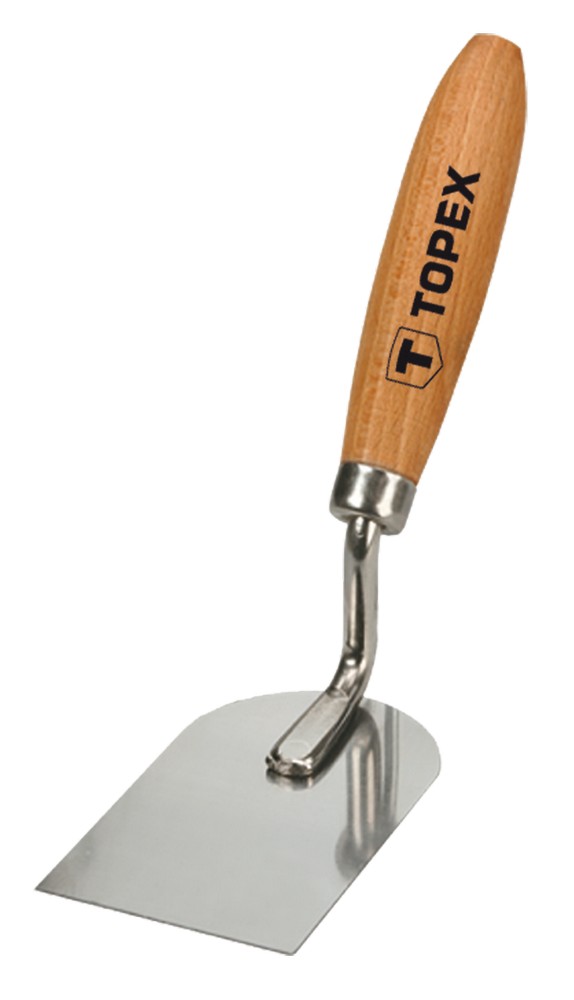 Designad för applicering av små mängder gips, lim och murbruk i svåråtkommliga områden. Tillverkad i högkvalitativt rostfritt stål med handtag i trä.