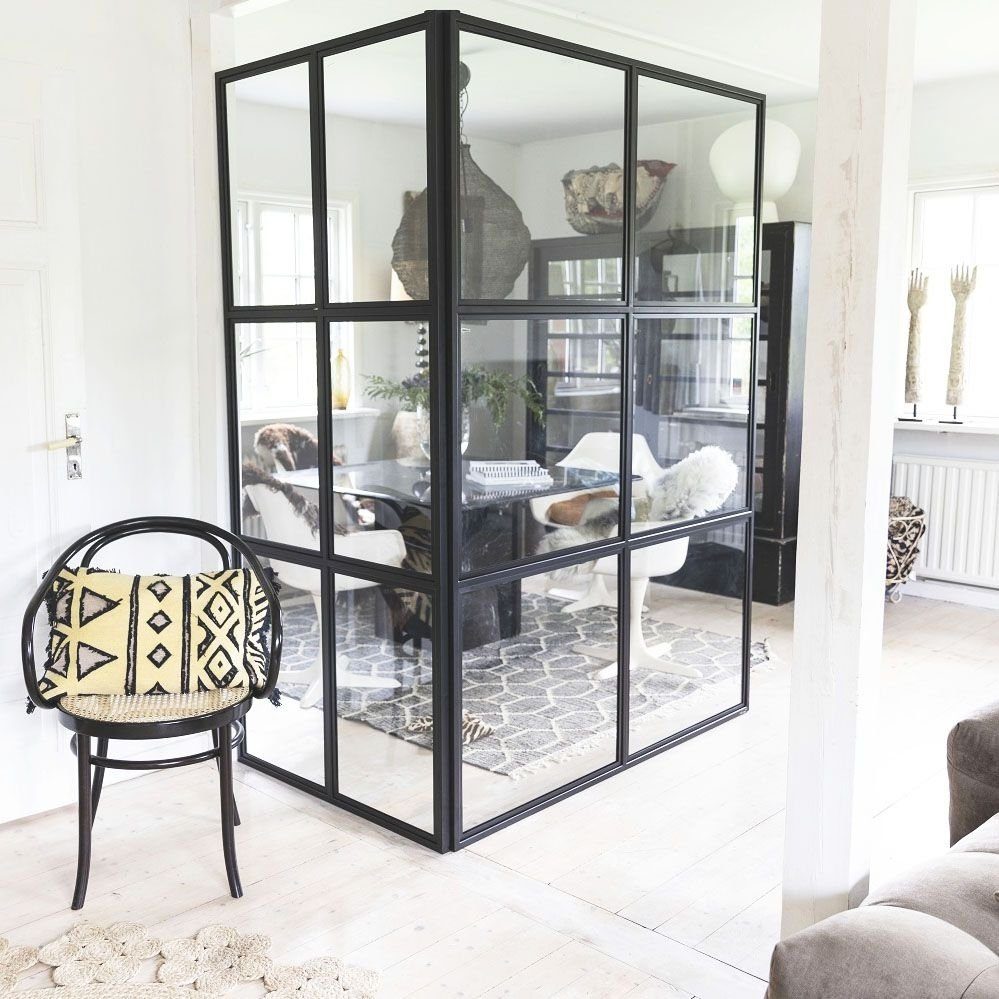 Skapa en stilren och luftig rumsavdelning med denna exklusiva glasvägg i industriell design. Kombinationen av svart stål och klarglas ger ett elegant uttryck som förvandlar rummet utan att stänga ute ljuset. Perfekt för dig som vill skapa en avgränsning mellan kök och vardagsrum, eller dela av större ytor utan att kompromissa med ljusinsläppet.