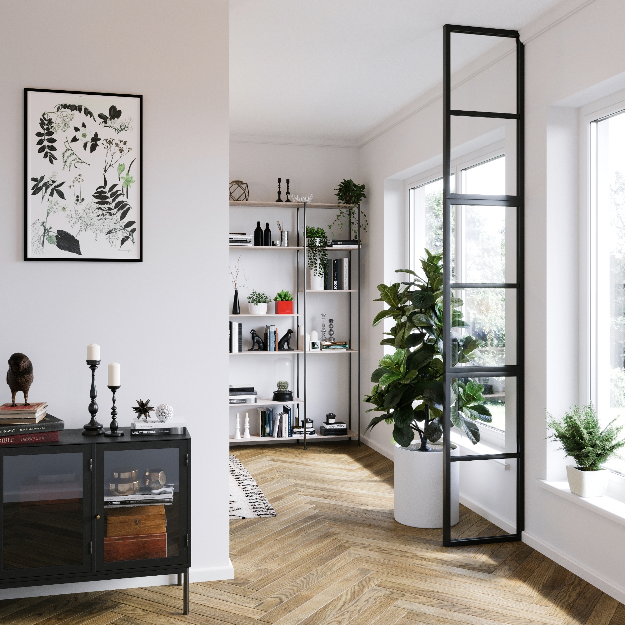Vill du ge din heminredning mer känsla och karaktär är denna stilrena rumsavdelare i industriell design ett utmärkt val. Väggen är både snygg och praktisk då den släpper igenom ljus och tillåter en känsla av rymd samtidigt som den skärmar av visuellt och minskar en del ljud.