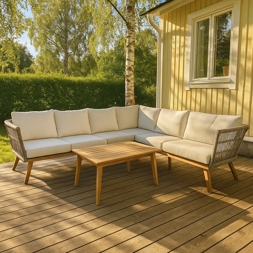 Inez utegrupp - Grå konstrotting & Akacia | Hörnsoffa