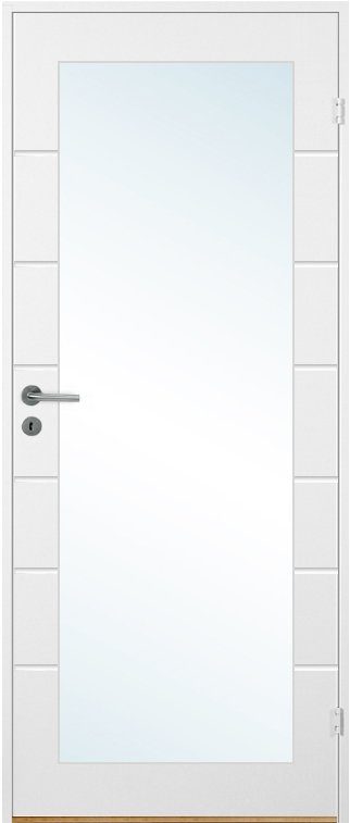 Den spårfrästa dekoren ger innerdörren Bornholm en distinkt karaktär och den inbyggda glasrutan släpper in naturligt ljus, vilket bidrar till en ljusare och mer öppen känsla i dina rum. Genom att kombinera funktionalitet och estetik är denna dörr idealisk för att separera rum utan att stänga ute ljuset. Tillverkad av högkvalitativa material är denna innerdörr både tålig och lätt att underhålla. Den vitmålade ytan och glasrutan gör det enkelt att hålla dörren ren och fräsch över tid.