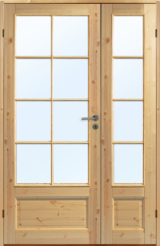 Innerdörr Kungsholmen är en allmogedörr i massiv furu med stort glasparti.