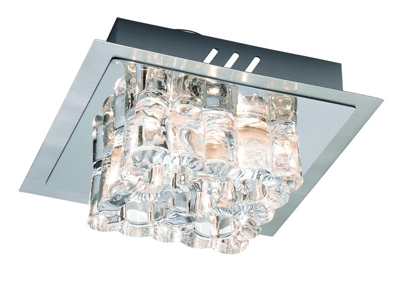 Karby stilrena taklampa som är tillverkad för badrummet. Basen är tillverkad i kromad metall och bostad stål med skärmar i klarglas. Hängs upp med takbygel. Fast installation. Lamphållarna är G4 halogen, max 20W. Simpel montering av lampan i badrummet.
