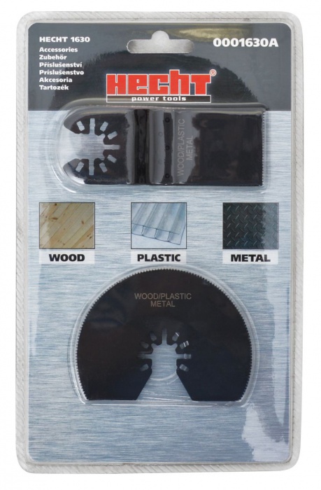 Kit med blad för kapning av trä, plast och metall.