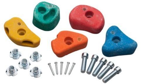 Dessa multifärgade klätterstenar skapar en spännande och utmanande klätterväg, designade för att passa klätterväggar från Palmako. De olika färgerna gör klättringen mer engagerande och hjälper till att utveckla barnens motoriska färdigheter och koordination.