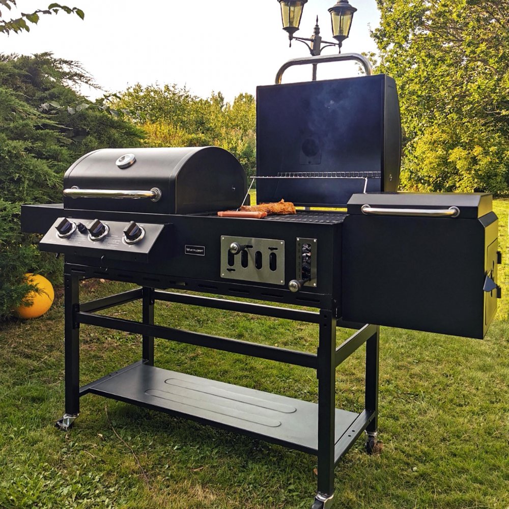 Kan du inte bestämma dig mellan kolgrillens klassiska smak eller gasolgrillens bekvämlighet? Med Cleaveland kombigrill behöver du inte välja – här får du både en gasolgrill med tre kraftfulla rostfria brännare, en klassisk kolgrill med höj- och sänkbart grillgaller samt en sidomonterad rök för långsam tillagning. Perfekt för allt från vardagsgrillning till BBQ i mästarklass.