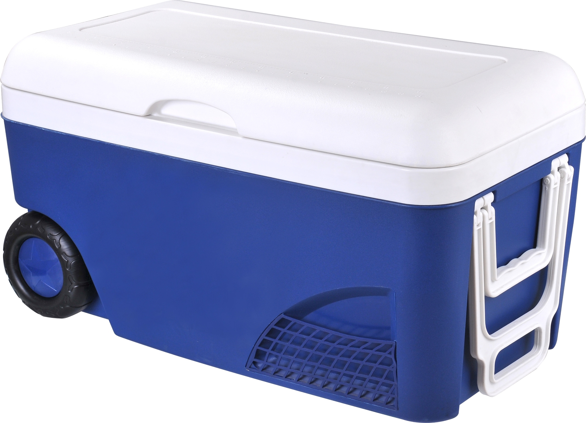 En fantastisk och rejäl kylbox som är den perfekta kompanjonen till stranden, på utflykten eller varför inte i trädgården under grillfesten! Den är rymlig och har två stabila hjul och ett robust handtag som gör den enkel att transportera även när den är välfyld! Den är enkel att öppna, och har en borttagbar innervägg om man vill dela upp den i två mindre fack.