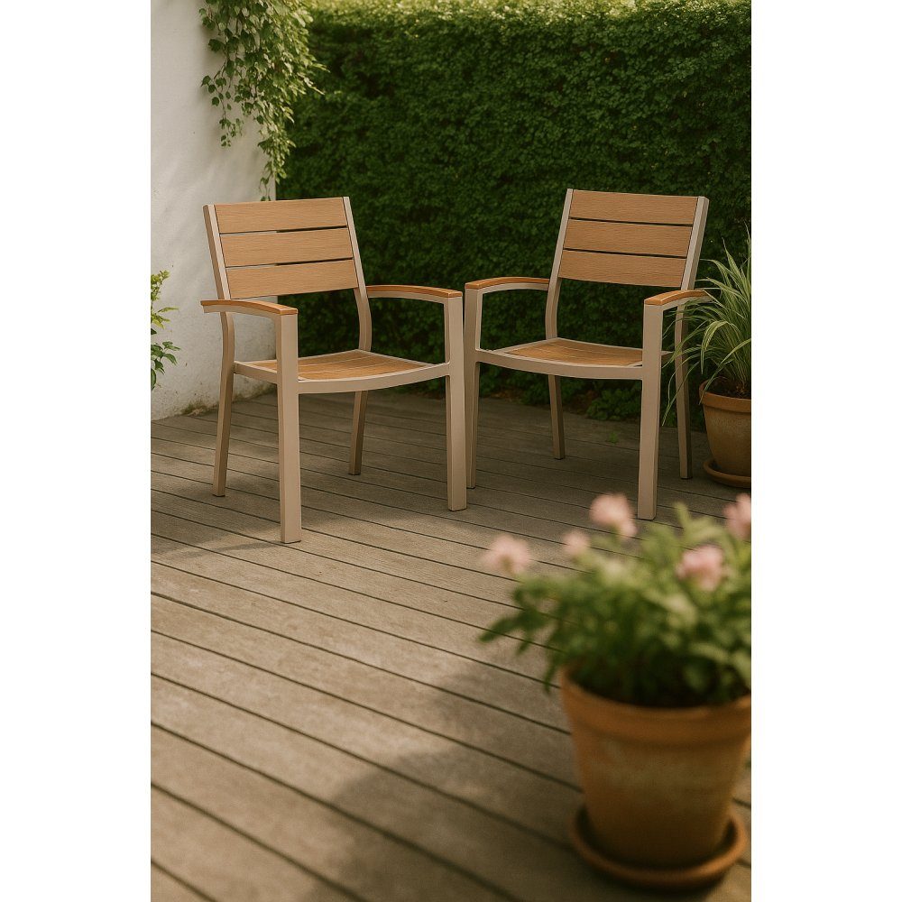 Las Vegas karmstol trädgårdsstol aluminium beige ek