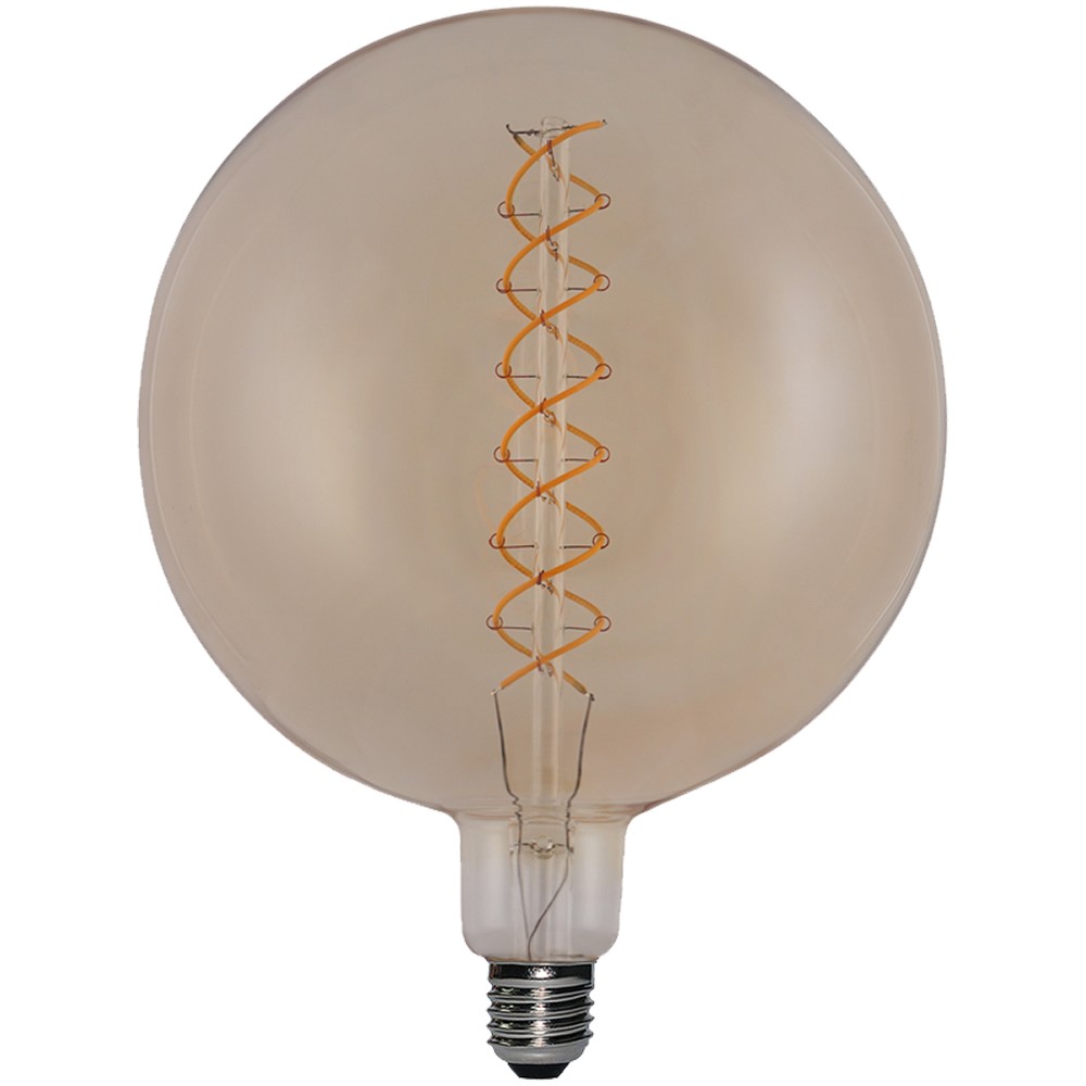 Dimbar LED lampa med E27 sockel, ljusstyrka 250Lm och strålvinkel 330 grader. Denna glaslampa har en guldfärgad finish, en vacker extra varm vit färgtemperatur på 2200K och är den perfekta dekorativa stämningsbelysningen för varje rum i ditt hus. Kan användas med både en främre och bakre dimmer. Miljövänligt på grund av energiförbrukningen på endast 5W och livslängden på 15 000 timmar. Denna modell är sfärisk och har en diameter på 200 mm (G200).