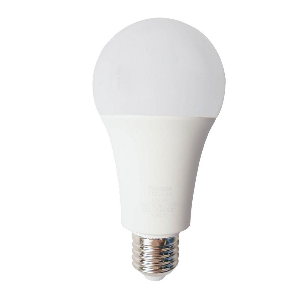 LED lampa med E27 sockel och ett opalt glasskydd. Denna lampa har en ljusstyrka på 1521Lm med endast 14W energiförbrukning och är därför mycket effektiv. Denna lampa har en strålvinkel på 220 grader för optimal belysning av rummet. Denna lampa har en varm vit färgtemperatur på 2700K för ett varmt och atmosfäriskt ljus. Miljövänligt på grund av den låga energiförbrukningen och livslängden på 15 000 timmar. Päronformad modell med en diameter på 70 mm (A70). Denna lampa ersätter de gamla glödlamporna på 100W. Denna lampa är inte dimbar