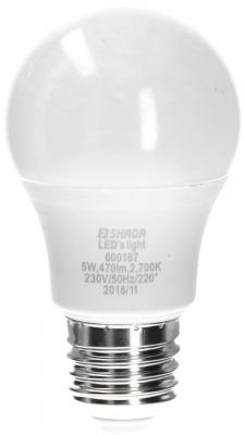 LED lampa med E27 sockel. Denna lampa har en ljusstyrka på 470Lm med endast 5W energiförbrukning. Denna lampa har en strålvinkel på 220 grader, vilket garanterar ett mycket spritt ljus för att belysa en stor yta med endast en lampa. Denna lampa har en varm vit färgtemperatur på 2700K. Miljövänligt på grund av den låga energiförbrukningen och livslängden på 15 000 timmar. Päronformad modell med en diameter på 60 mm (A60). Denna lampa är inte dimbar.