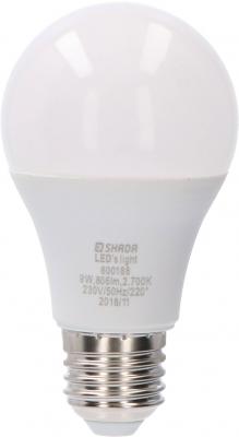 LED lampa med ett E27 sockel. Denna lampa har en ljusstyrka på 806Lm med endast 9W energiförbrukning. Denna lampa har en strålvinkel på 220 grader, vilket garanterar ett mycket spridd ljus för att belysa en stor yta med endast en lampa. Denna lampa har en varm vit färgtemperatur på 2700K. Miljövänligt på grund av den låga energiförbrukningen och livslängden på 15 000 timmar. Päronformad modell med en diameter på 60 mm (A60). Denna lampa är inte dimbar.