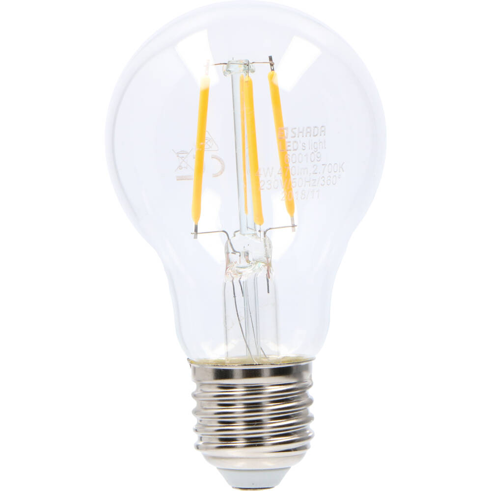 LED lampa med E27 sockel, en ljusstyrka på 470Lm med en energiförbrukning på endast 4W och en strålvinkel på 360 grader. Denna lampa har en varm vit färgtemperatur på 2700K. Miljövänligt på grund av den låga energiförbrukningen och livslängden på 15 000 timmar. Päronformad modell med en diameter på 60 mm. (A60). Denna lampa är inte dimbar.