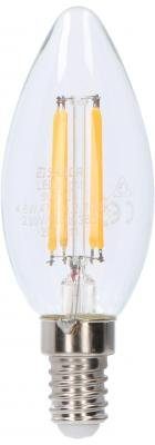 LED lampa med E14 sockel, en ljusstyrka på 470Lm med en energiförbrukning på endast 4,5W och en strålvinkel på 360 grader. Denna lampa är tillverkad i glas med en högkvalitativ finish, har en varm vit färgtemperatur på 2700K. Miljövänligt på grund av den låga energiförbrukningen och livslängden på 15 000 timmar. Denna modell har formen av ett ljus och har en diameter på 35 mm (C35). Denna lampa är dimbar.