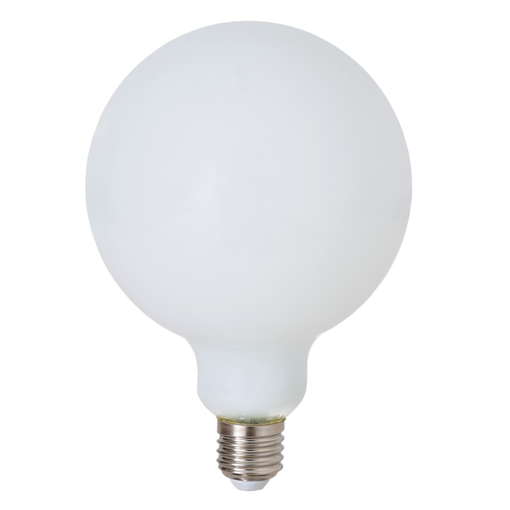 Opal-färgad LED lampa med en ljusstyrka på 1055 lumen. Denna lampa har en stor strålvinkel på 365 ° så att ljuset fördelas optimalt och kan jämföras med de gamla traditionella glödlamporna. Denna modell har en skuggefri ljusfördelning tack vare den korsade glödtråden. Formen på denna lampa är världen (G125) med E27 sockel.