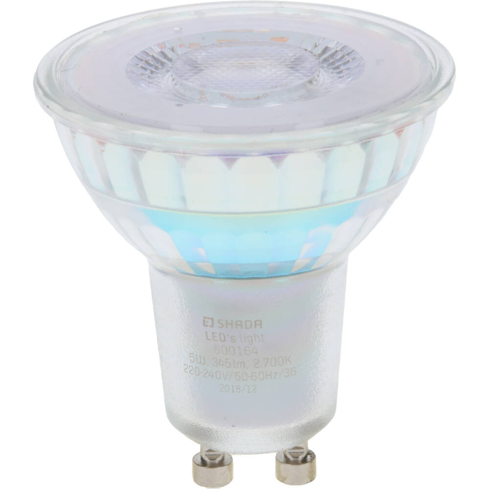 Denna LED lampa med GU10 sockel är en modern energieffektiv ersättning för dina gamla halogenlampor. Med en strålvinkel på 36 grader, en ljusstyrka på 345Lm med endast 4,5W energiförbrukning och en varm vit färgtemperatur på 2700K är denna lampa perfekt för användning i både strålkastare och funktionell belysning. Livslängden på 20 000 timmar är mycket längre än för traditionella glödlampor eller halogenlampor. Mått: 60x51mm. Denna lampa är dimbar.