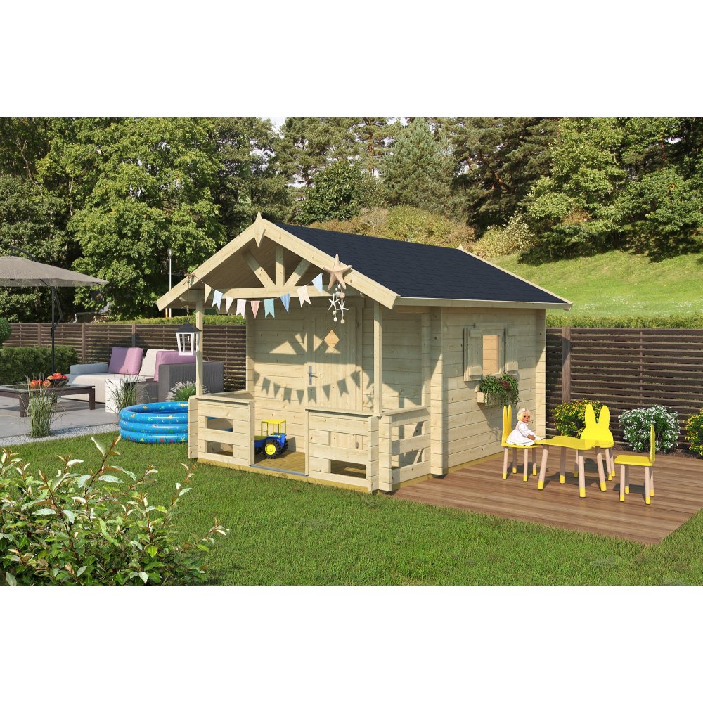 Lekstugan Liam är en stor och robust som ger barnen gott om utrymme för kreativ lek och fantasi direkt i trädgården. Med sin generösa yta på 5.5 m² är den perfekt för lite större trädgårdar och erbjduer en mysig samt trygg plats där barnen kan skapa sina egna äventyr. Lekstugan är obehandlad, vilket ger dig möjlighet att måla och personalisera den efter dina behov och önskemål, för att passa perfekt för dina barn och din trädgård.