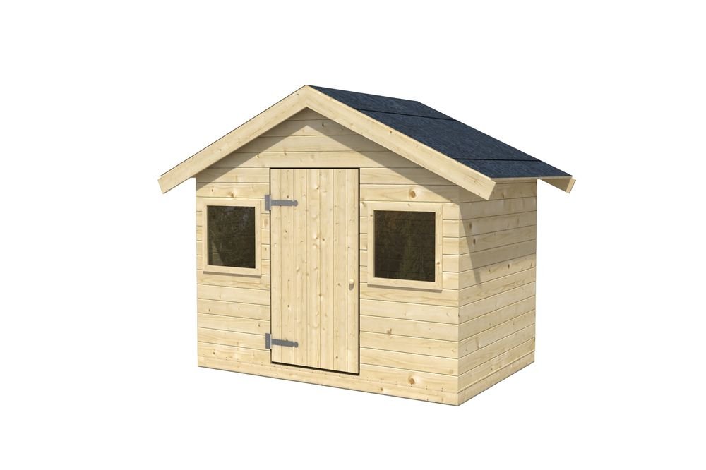Denna lekstuga levereras komplett som en byggsats och monteras enkelt ihop efter medföljande ritning. Stugan har en knuttimrad design och uppbyggnad vilket gör det både lättmonterat och stabilt. Allt material levereras obehandlat, rekommenderat är att tidigt behandla med grundolja, utegrundfärg eller täckfärg. Inkluderat är allt som behövs för montering, d.v.s. spikar, skruvar etc.