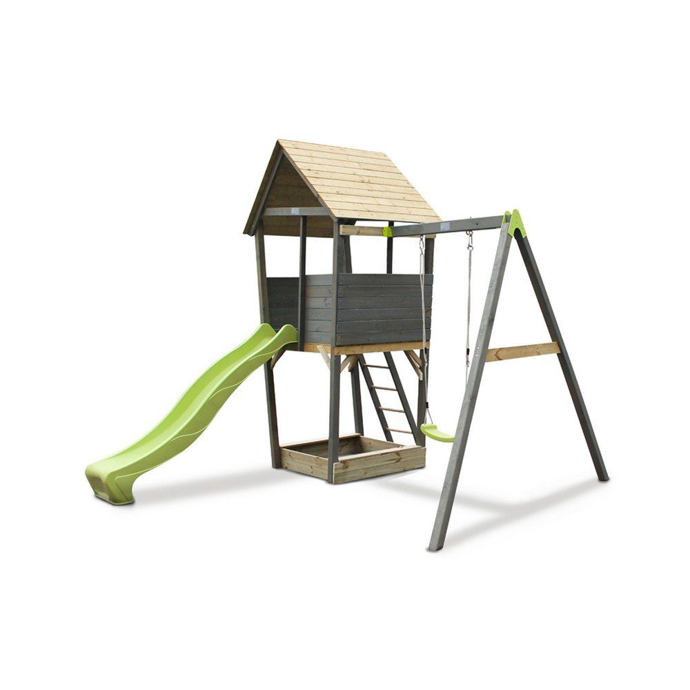 Detta lektron från Exit Toys erbjuder en komplett lösning för barnens utomhuslekar. Med sin rejäla konstruktion, en inkluderad gungsits och en plattform för klättring och rutschkana, är det en ultimat lekplats för trädgården. Ställningens mått på 308x296x323 gör det rymligt och inbjudande för både små och stora äventyrare.