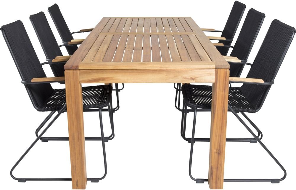 Lekvall Matgrupp (200x90) - Svart/Natur - 6 Stolar