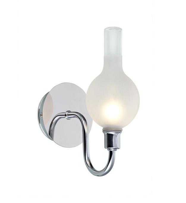 Linde vägglampa för badrummet med en stilren design. Tillverkad i kromad metall med en lampskärm i frostat glas. Fast jordad installation. G9 max 18W halogen. Ljuskälla medföljer. Lampan monteras lätt på plats i badrummet.