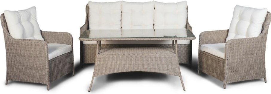 Ljusö utegrupp; 3-sits soffa med bord och fåtöljer - Beige konstrotting
