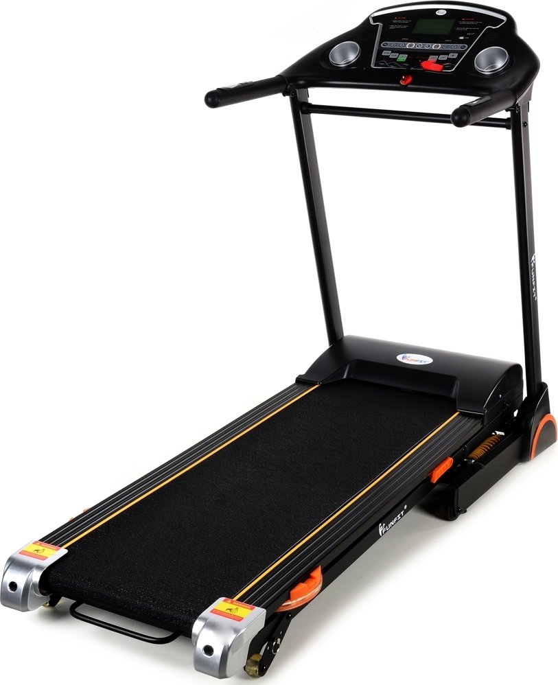 Löpband med extra stötdämpning och inbygga högtalare, USB-port samt lättillgänglig justering av hastigheten ute i handtaget.