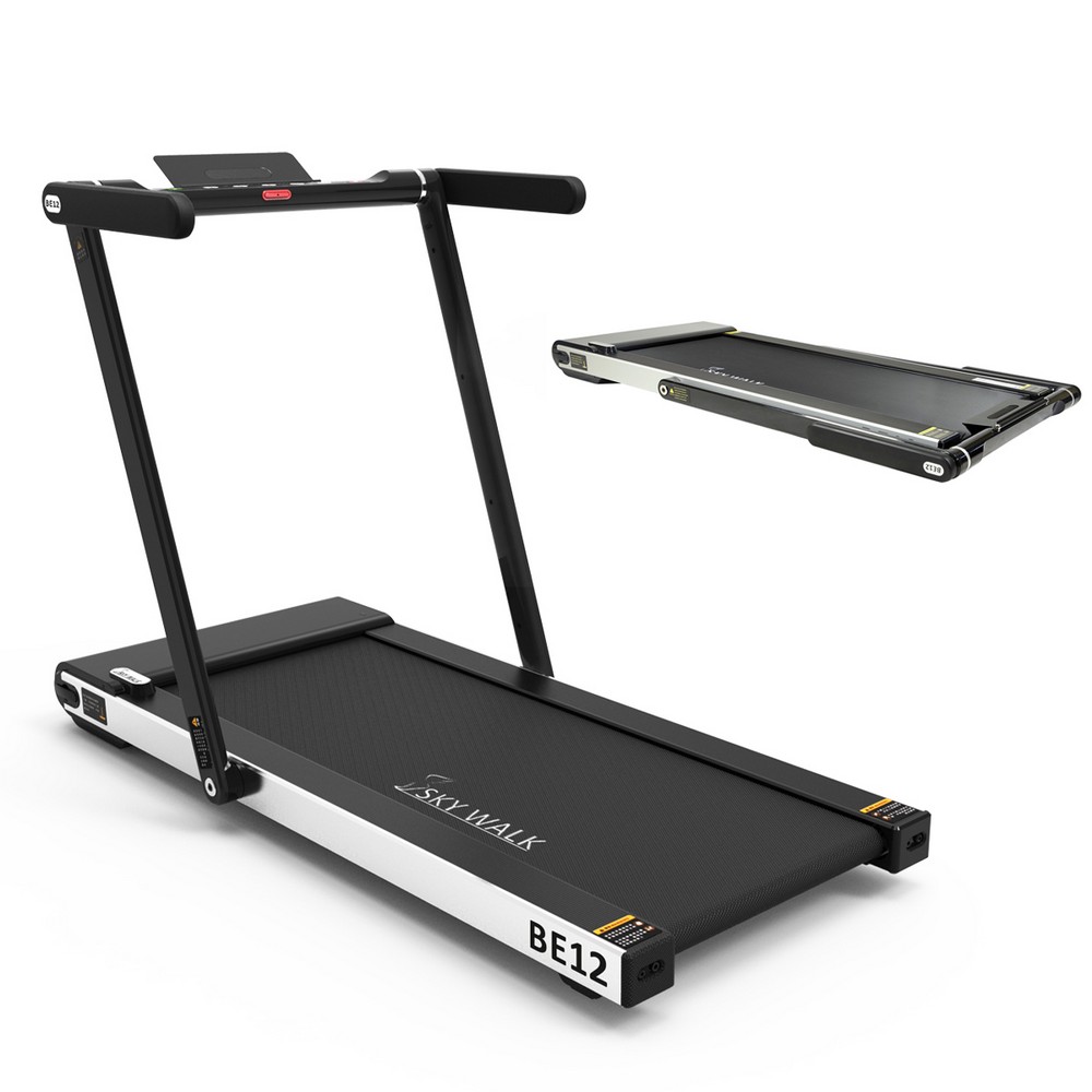 Löpband BE12 i modern snygg design med flertalet användbara funktioner, LED-display som är enkel att navigera och vikbar funktion, samt hjul som gör det enkelt att plocka undan och förvara, exempelvis under en säng.
