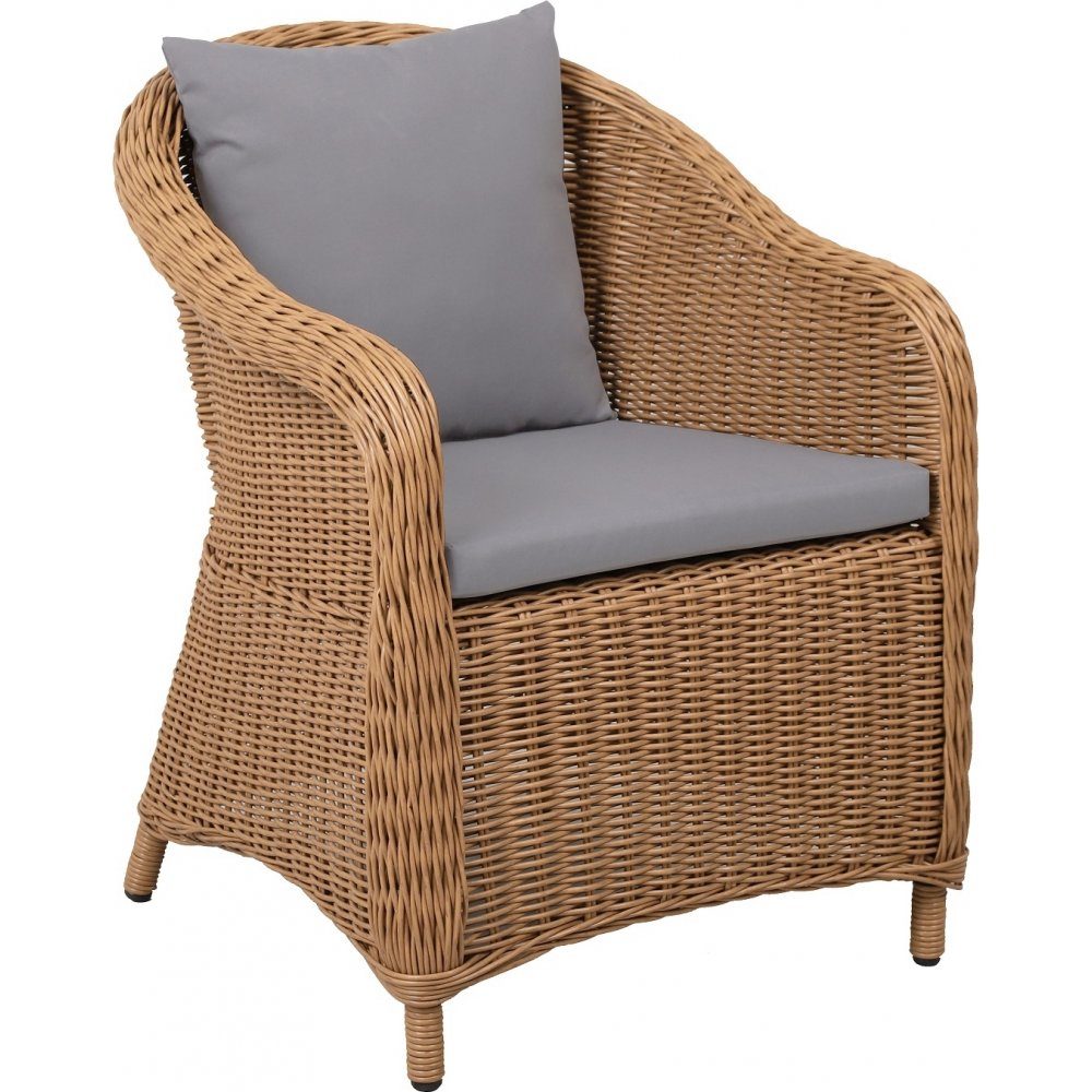 En mysig utestol med en klassisk design. Stolen är tillverkad med aluminiumstomme och naturfärgad konstrotting. Fåtöljen kan användas både som en matstol på uteplatsen eller som en loungefåtölj.