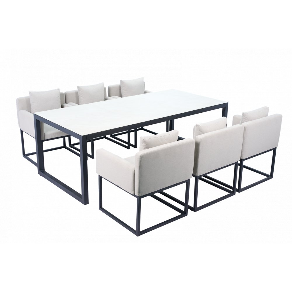 Denna matgrupp för utomhusbruk med sex stolar och ett generöst matbord är utformad för dig som vill kombinera funktion, komfort och ett stilrent uttryck på altan, terrass eller i trädgården. Med ett bord på 215 cm finns gott om plats för middagar, umgänge och sociala tillfällen utomhus.