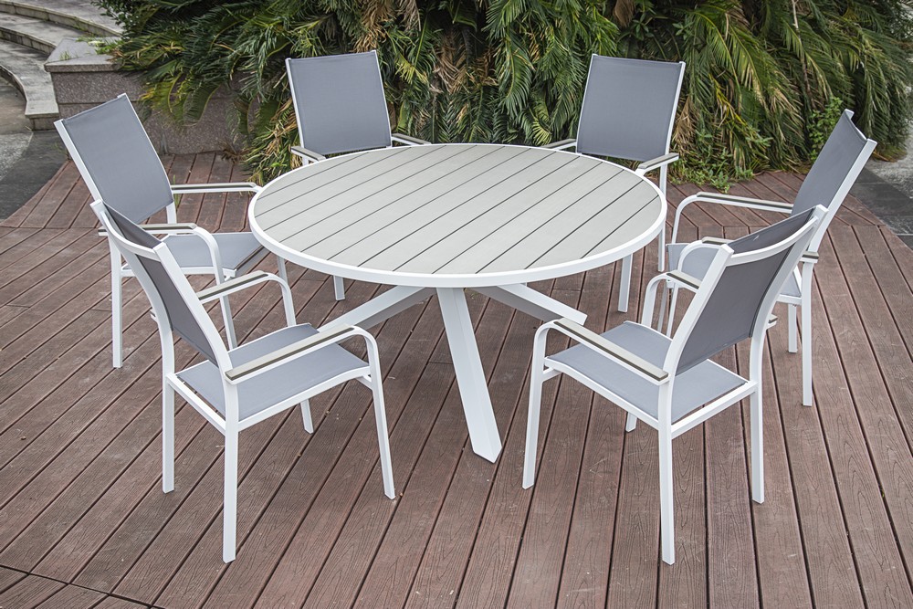 Matgruppen finns även med bordet i storleken Ø120, vilket ger extra utrymme för större sällskap. Oavsett om du vill ha en mysig middag utomhus eller en avkopplande fikastund, är denna utegrupp en stilren och funktionell lösning.