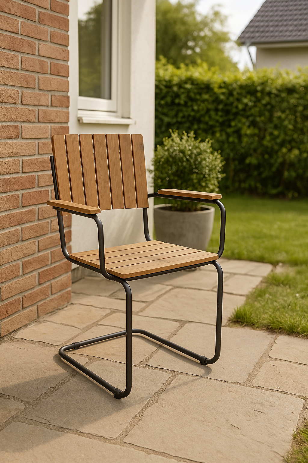 De fyra tillhörande Holmsund-stolarna matchar bordet i både material och stil. Tillverkade i teakoljat acaciaträ och svartlackad metall, kombinerar de komfort, hållbarhet och ett tidlöst formspråk. Med armstöd och god sittkomfort är stolarna perfekta för avkopplande stunder med familj och vänner.