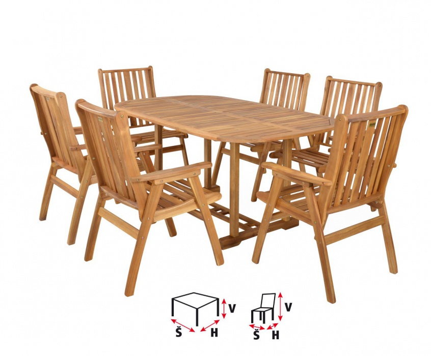 Set med trädgårdsmöbler, 1 bord och 6 stolar.