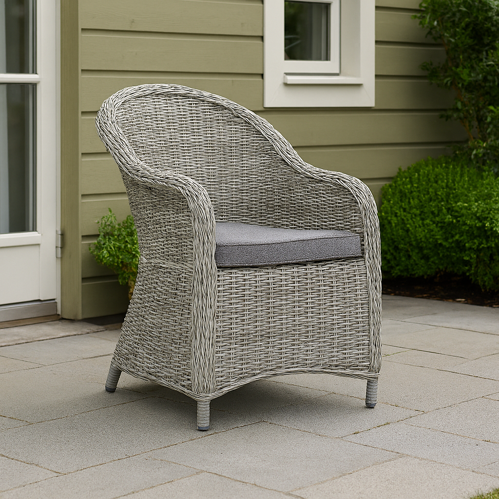 Upplev komfort och stil med Mercury utefåtölj, en perfekt möbel för utomhusbruk som ger din uteplats en exklusiv känsla. Tillverkad av grå konstrotting, erbjuder denna utemöbel både hållbarhet och elegans. Den mörkgrå dynan av polyester ger extra komfort och är lätt att rengöra, vilket gör den idealisk för alla utomhusaktiviteter.