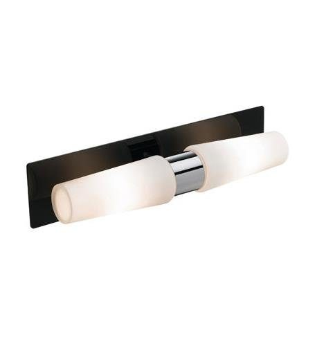 Vägglampa Midsjö med en stilren design som är anpassad för badrum. Väggplattan i svart metall, lamphållaren i krom och vita glaskupor. Avsedd för fast installation. 2x4W fast LED, 2x220 lumen. Energiklass A. Lätt montering av lampan i badrummet.
