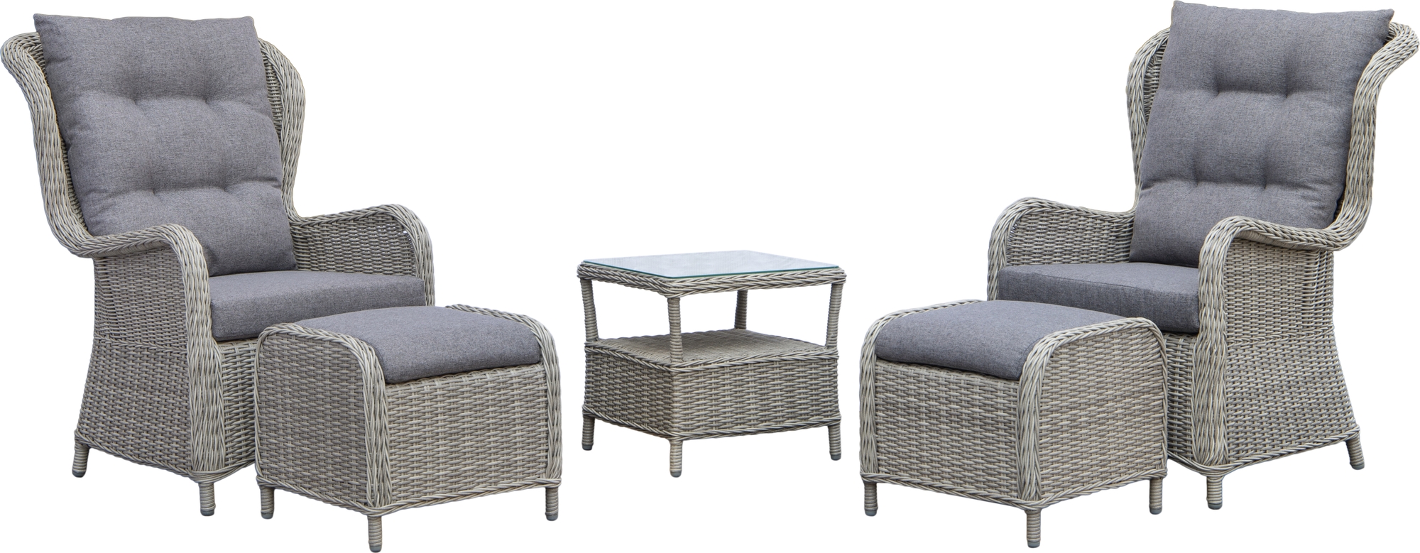 Milano - Utemöbelset med två fåtöljer, två fotpallar och sidobord