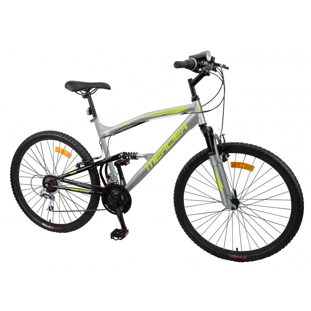 Cykeln är utrustad med 18 växlar som ger flexibilitet vid olika typer av underlag och lutningar. Den främre stötdämpningen bidrar till ökad komfort vid körning på ojämna vägar, medan V-bromsar ger tillförlitlig bromsning.