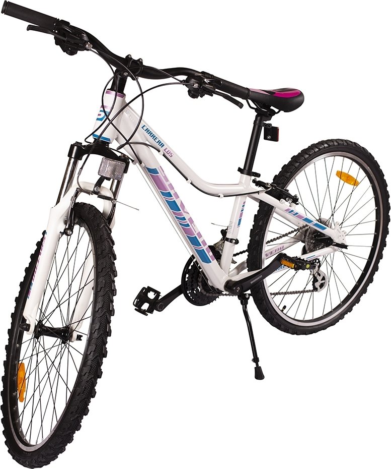 Sportig mountainbike med stötdämpad framgaffel som gör de enkelt att ta sig an terräng. Utrustad med V-broms både fram och på bakhjulet för anpassad nerbromsning. Cyklen har också hela 16 olika växlar från Shimano för att enkelt kunna anpassa sin cykelfärd för olika situationer och distanser.